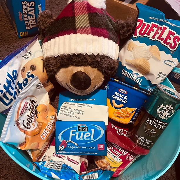NICU Care Baskets include stuffed animals, gas gift cards, food gift cards, baby books, baby blankets, hygiene items, etc. For $50.00 you can help provide necessities a NICU family may need, while currently having a baby in the hospital.